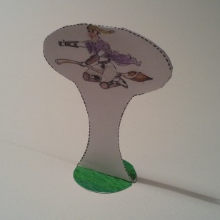 Pour obtenir vos pions, imprimez la planche, découpez les pions le long des pointillés, et pliez les en deux, en aplatissant les deux-demi cercles verts pour faire le socle. Et maintenant, enfourchez votre balais, et foncez sur le terrain !